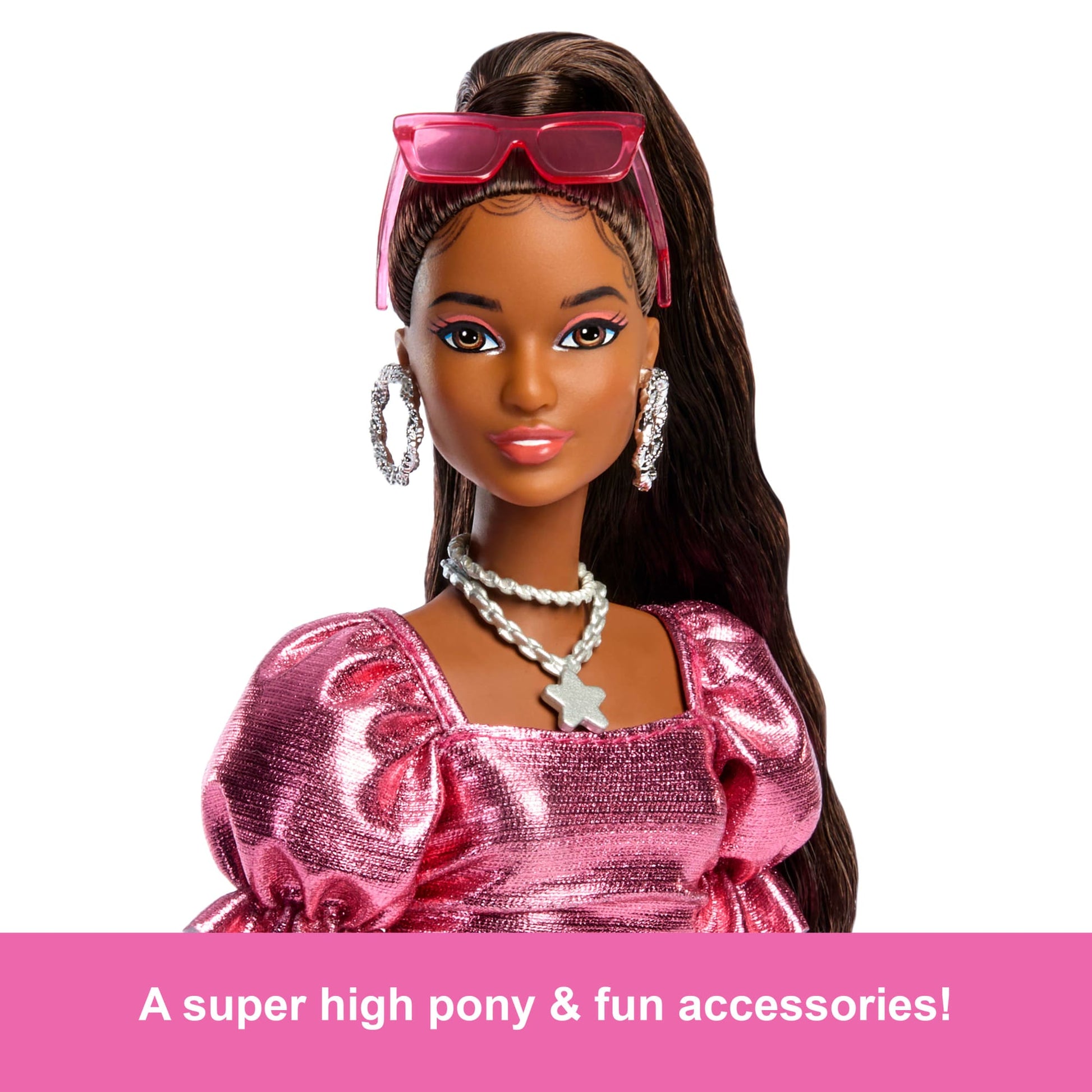 Barbie Deluxe Style Fashion Doll #6 in Metallic Coral Dress With Bubble Hem And Silvery Accessories