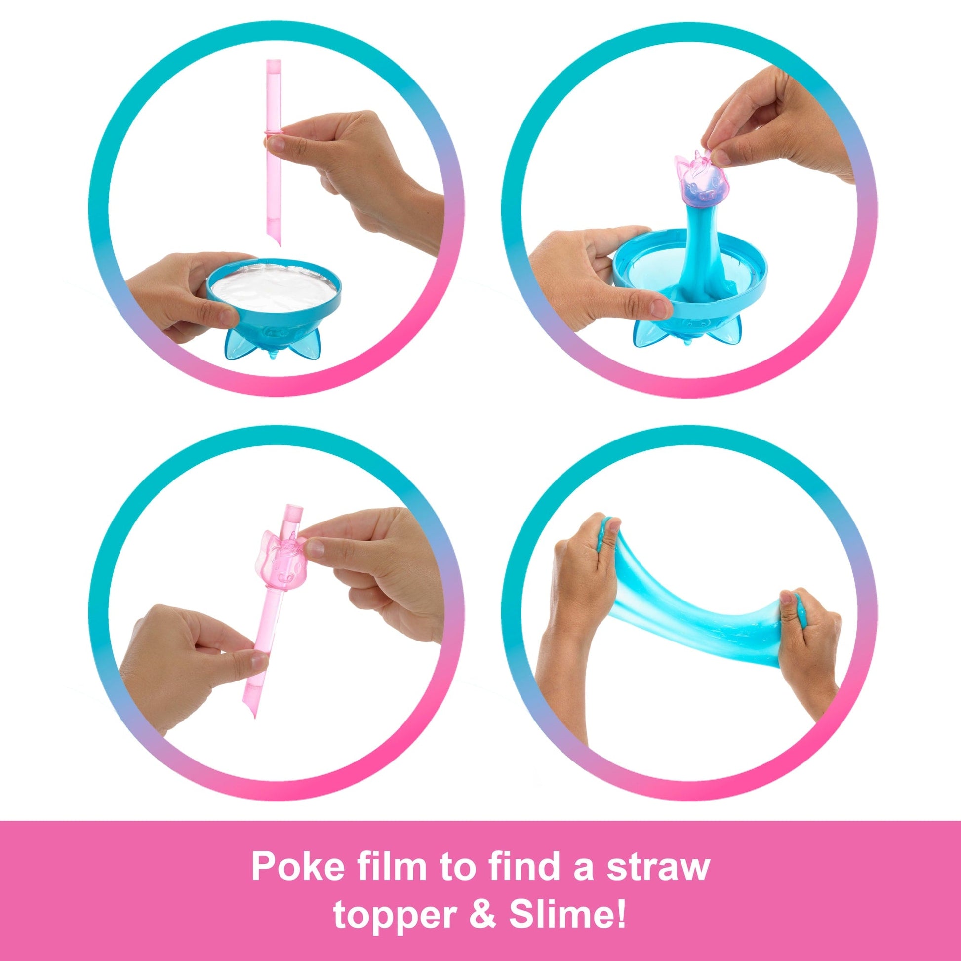 Barbie Pop Reveal Shakes Series dolls offer a sensory opening experience with eight surprises inside a shake-inspired cup! Unscrew the animal ear lid with the shimmery Slime and poke through the film with the straw for squishy fun. Peel the film on the cup to reveal a shake-scented Barbie doll and seven more surprises! Which doll will you reveal? There's a Sweet Unicorn, Cute Kitten or Bright Bunny. Continue opening to discover two reusable ice cubes that pop open to reveal a skirt or pair of shorts and a pair of shoes or boots. Mystery bags reveal a squishy, scented matching pet, a pet bed and an animal ear headband! Discover more wow with a color-change transformation on Barbie doll's face. Kids will want to collect them all! Each doll sold separately, subject to availability. Dolls cannot stand alone. Colors and decorations may vary.